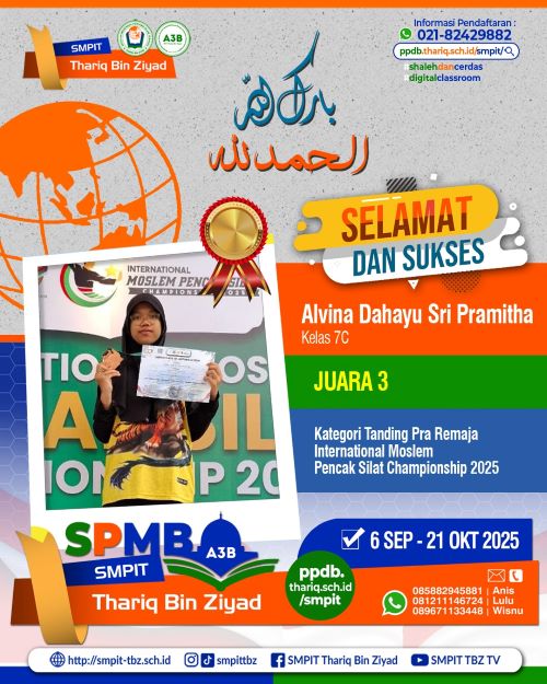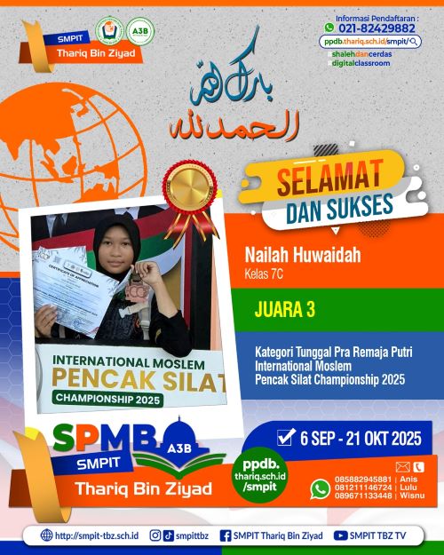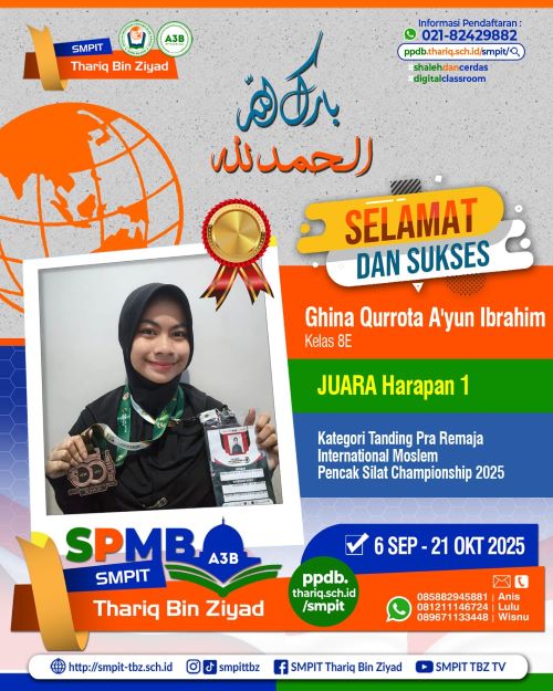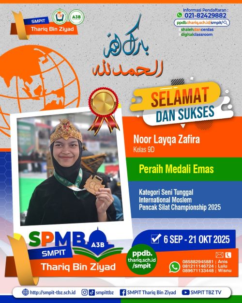 Thariq.sch.id- Prestasi gemilang kembali diraih oleh peserta didik Sekolah Islam Terpadu (SIT) Thariq Bin Ziyad (TBZ). Menyusul sukses santri SMPIT TBZ Boarding School yang sebelumnya meraih Juara 1 Pidato Bahasa Inggris di Porseni Pontren 2025, kini giliran empat siswi dari SMPIT TBZ Fullday yang unjuk gigi di kejuaraan tingkat internasional.