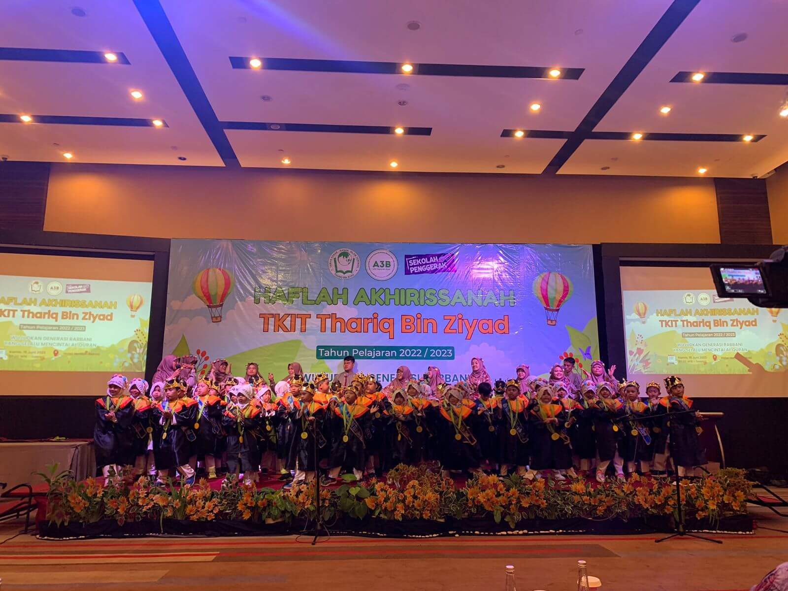 Bekasi(20/06/2023)- TKIT Thariq Bin Ziyad mengakhiri proses belajar mengajar di tahun pelajaran 2022-2023 dengan mengadakan Haflah Akhirissanah (perayaan/wisuda) bagi peserta didik level B. Kegiatan Haflah Akhirissanah ini berlangsung di Sky Ballroom, Hotel Horison Ultima, Bekasi, Kamis (15/06/2023).