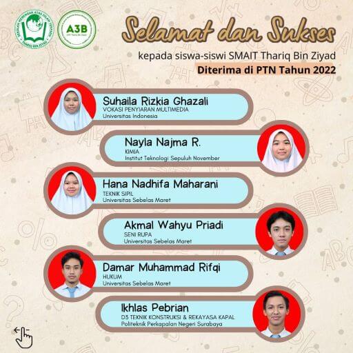 Baca juga : Siswa SMAIT Thariq Bin Ziyad Lulus Di ITB Lewat Jalur SNMPTN 2022.