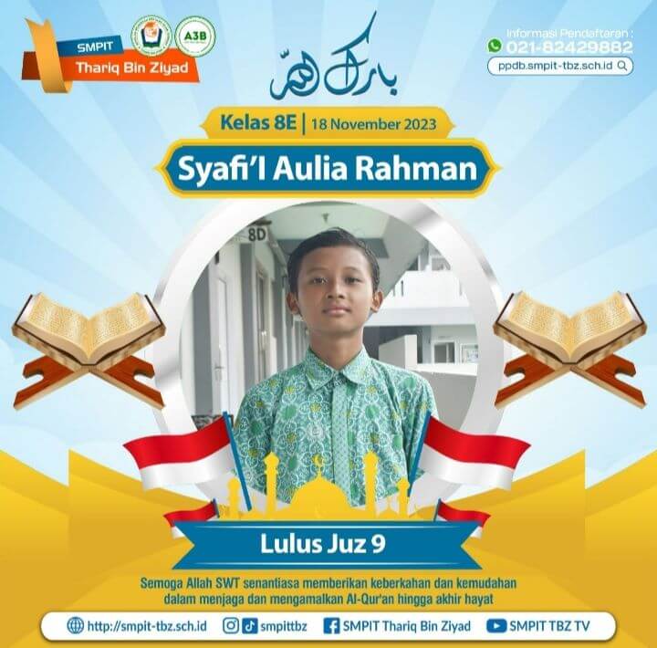 Baca juga : Syafi’i Aulia Rahman Kelas 8E Lulus Sertifikasi Alquran Juz 9