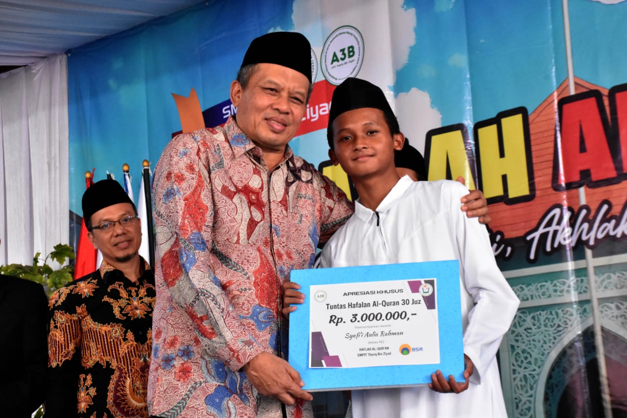 Thariq.sch.id- Dari syahdunya acara Haflah Al-Qur’an SMPIT TBZ, yang diselenggarakan pada Rabu, (28/05/2025), peserta yang hadir dibuat terhenyak sekaligus haru. Betapa tidak, di tengah gempuran derasnya pengaruh media sosial, muncul kisah nyata yang menyentuh hati dan menggugah semangat. Salah satu siswa kelas 9 SMPIT TBZ yang bernama Syafi’i Aulia Rahman berhasil hafal 30 juz Al-Qur’an dalam waktu tiga tahun. Bukan di lingkungan pesantren, tetapi dari rumah, di sekolah, dan di komunitasnya yang sederhana.