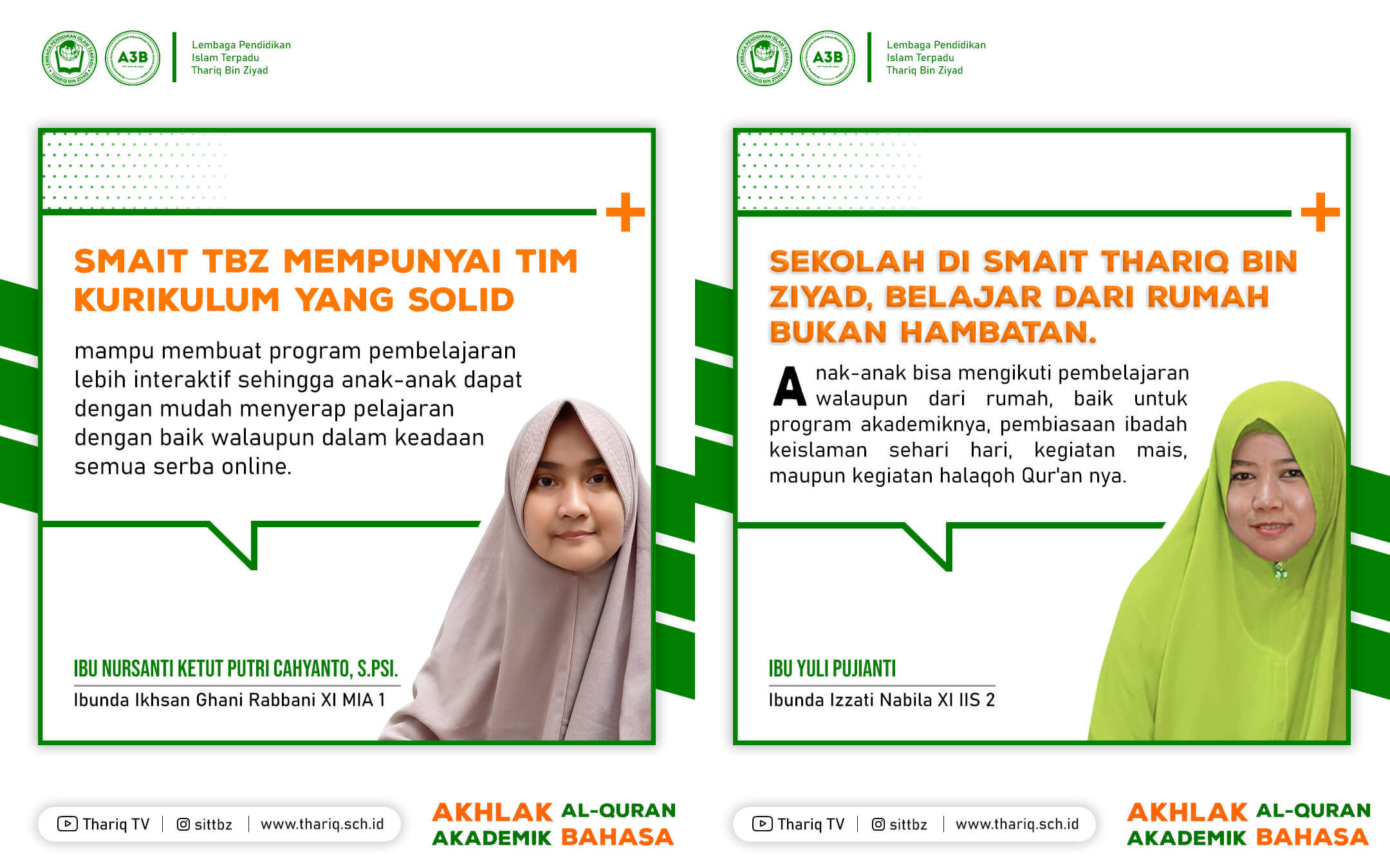 Anak-anak sudah 1 tahun belajar dari rumah selama pandemi. Menurut saya sebagai orang tua siswa dari Izzati Nabila, kelas XI IIS 2, tidak menjadi masalah dan hambatan, Karena pihak sekolah SMA IT TBZ juga sudah membuat program pembelajaran dimana anak anak bisa mengikuti pembelajaran walaupun dari rumah, baik untuk program akademiknya, pembiasaan ibadah keislaman sehari hari, kegiatan mais, maupun kegiatan halaqoh Qur’an nya.