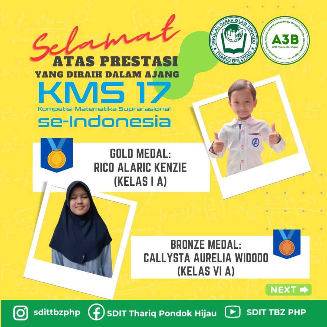 Enam medali yang diperoleh Tim Matematika SDIT TBZ PHP terdiri dari 1 medali emas, 1 perunggu, dan 4 Merit (Juara 4). Berikut adalah nama-nama siswa SDIT TBZ PHP yang meraih medali di ajang KMS 17 :